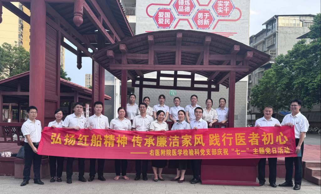 为庆祝中国共产党成立104周年,强化党员党性教育,推进作风建设,医学检验科党支部于2025年7月8日下午组织开展了“弘扬红船精神 传承廉洁家风 践行医者初心”主题党日活动。全体党员、预备党员、发展对象和入党积极分子参加了此次活动。