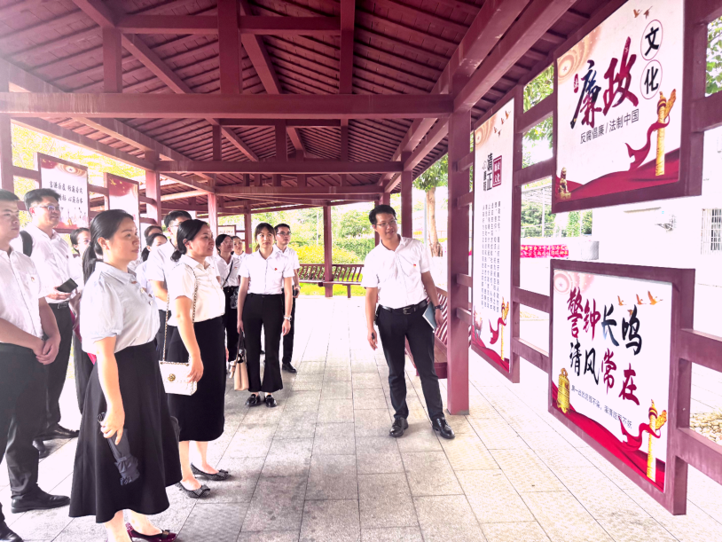 随后,罗世华同志带领大家参观了学校文化长廊,深入学习红船精神和廉政教育内容。通过理论学习与实地参观,党员们进一步筑牢了反腐防变思想防线,增强了廉洁从业的自觉性。