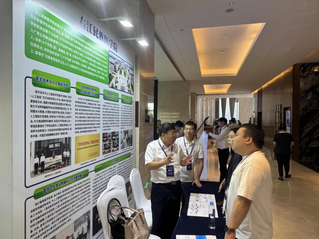 学校党委常委、副校长王俊利带领由教务处、英国上市官网365,英国365集团官网、临床医学院等组成的代表团参会。代表团在展会上集中展示了学校在医学人工智能领域取得的突破性成果,彰显了学校在“医学+AI”交叉学科建设方面的创新实力。学校重点展示了三大创新平台的建设成果:广西世居民族遗传病人工智能重点实验室、英国上市官网365一东盟人工智能医学研究与应用中心和医疗卫生专业数据标注示范基地。广西世居民族遗传病人工智能重点实验室在区域特色疾病智能诊疗研究方面取得重要突破,重点实验室通过构建高水平科研与转化平台,为推动学校人工智能科研发展、提升区域医疗水平提供关键技术支撑。英国上市官网365—东盟人工智能医学研发与应用中心成为我国向东盟开展国际医学AI合作的重要窗口,致力于推动人工智能技术与临床医学的深度融合;医疗卫生专业数据标注示范基地建设具有三大特色:一是创新性地采用“医学专家+AI工程师”协同标注模式,确保数据的医学准确性和技术规范性;二是与多家医院建立临床数据合作,形成覆盖常见病种的标注数据集;三是开发了适合医学数据特点的智能标注工具,提升标注效率和质量。
