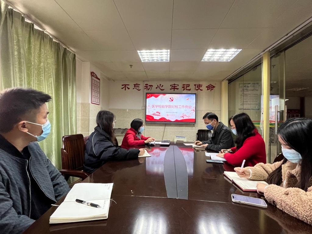 12月15日(星期四)下午17:00-18:00在7栋11楼会议室召开医学检验学院纪检工作例会,学院纪委委员和各党支部纪委委员参加会议。