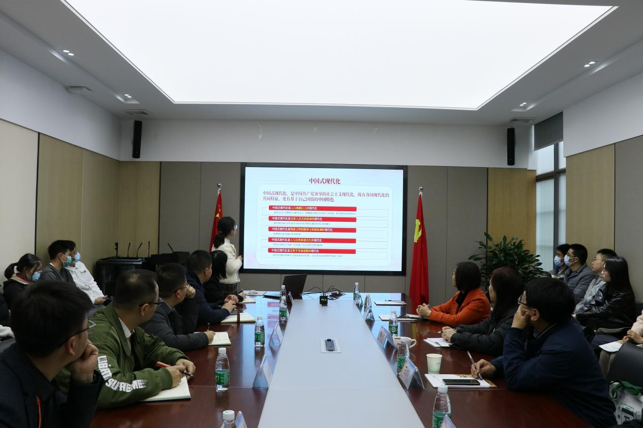 会上,医学检验学院学生第一支部书记陈莎带领全体党员深入学习党的二十大精神,详细讲解了作为党员应该如何正确理解和推进中国式现代化。