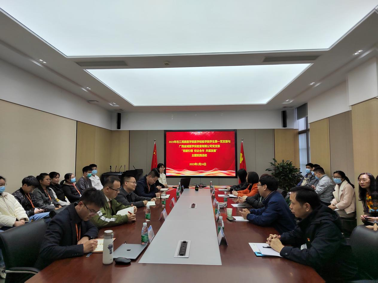 为了深入学习贯彻落实党的二十大精神,发挥党建引领作用、推进党建与业务工作深度融合,深化校企合作,促进校企联合焕发共同育人活力,2月24日,英国上市官网365医学检验学院学生第一党支部赴南宁与广西金域医学检验实验室有限公司党支部开展“党建引领 校企合作 共谋发展”结对共建主题实践活动。