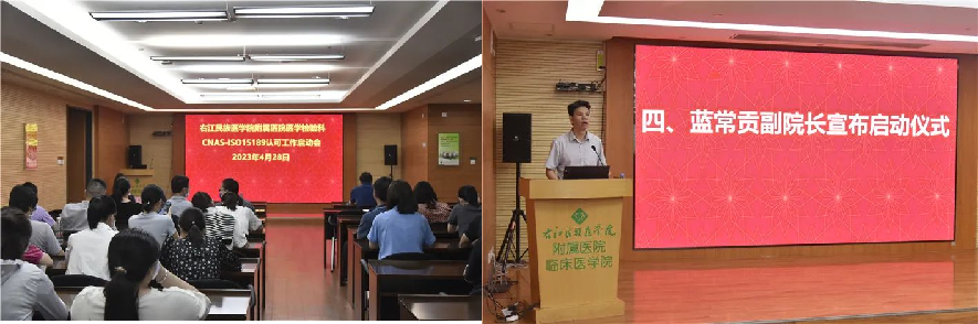 在启动会上,林栩书记、张秀明副院长、王春芳主任分别作了专题发言,认可工作的顺利启动不仅能全面提升实验室的能力、质量和管理水平,还能进一步促进医院医技科室内涵建设。医学检验科以此次启动会为契机,医学检验科支部党员充分发挥“医检先锋”的作用,团结所有力量,按照ISO 15189实验室认可准则开展各项工作,不断发挥学科优势,创新发展理念,进一步提高检测质量和检验能力,助力医院高质量发展、助力学校更大申博顺利完成作出贡献。