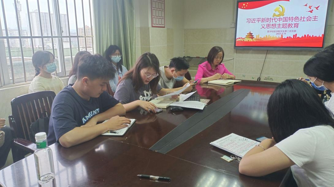为深入开展学习贯彻习近平新时代中国特色社会主义思想主题教育,医学检验学院学生第二党支部组织学生党员在7栋11楼会议室开展主题教育集体学习和自主学习。
