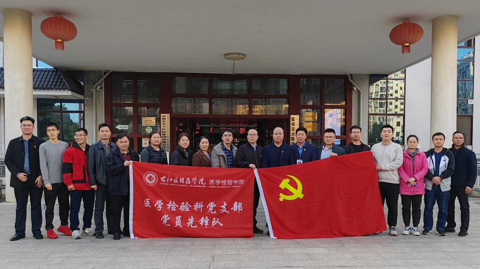 为学习贯彻党的二十大精神,进一步提升基层医疗服务水平,促进区域卫生事业协调发展,2023年11月16至17日,医学检验学院医学检验科党支部党员代表在附属医学党委陈文成副书记的带领下与临床专家一行20人,先后赴西林县中医医院、西林县那劳镇中心卫生院开展开展结对共建暨惠民红色行主题党日活动。