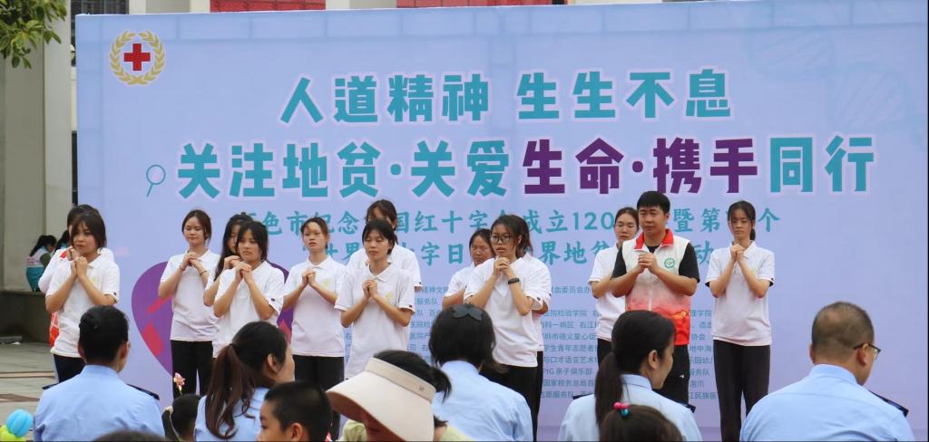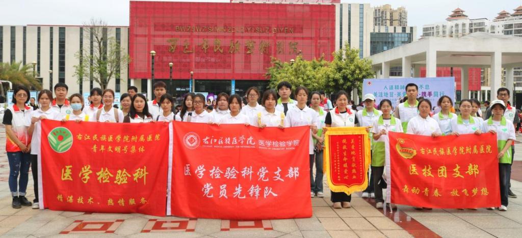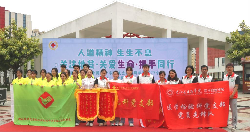 5月12日,参加了由百色市红十字会关爱地贫服务队在百色市图书馆南广场牵头举办的“关爱地贫,筛诊治并重”主题公益活动。活动现场,检验科收到了百色市红十字关爱地贫服务队赠予的“关爱地贫献热血 挽救生命暖爱心”的致谢锦旗,检验科青年团员和学生支部党员为群众表演了手语操《感恩的心》,向现场群众发放地贫相关手册并解疑答惑,呼吁大众关注地贫,并加入为地贫患儿无偿献血队伍,为地贫患儿提供关爱与支持。