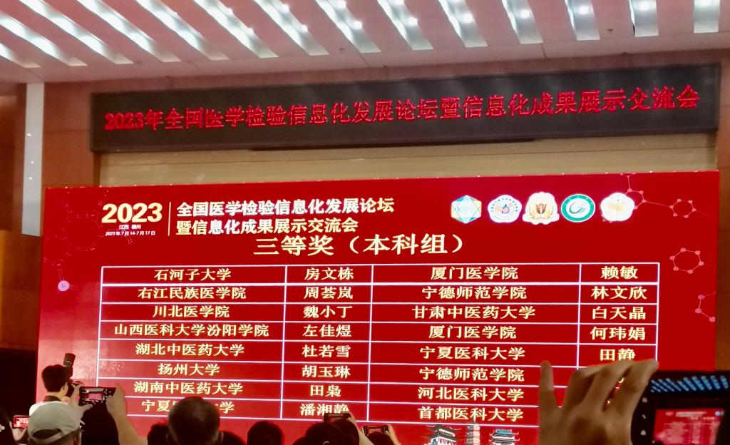 由高等学校国家级实验教学示范中心联席会、全国高等医学教育医学检验专业校际协作会、全国高等学校医学检验技术专业联盟、南方医科大学、赣南医学院主办,中华医学会检验分会协办的2023年全国医学检验信息化发展论坛暨信息化成果展示交流会,于7月14日至17日在江西赣州举办。会议期间同步进行学生形态学、虚拟仿真临床实验诊断、教师金微课等大赛交流活动。我院师生在形态学、虚拟仿真临床实验诊断、教师金微课等大赛中以扎实的功底和专业的素养荣获佳绩。