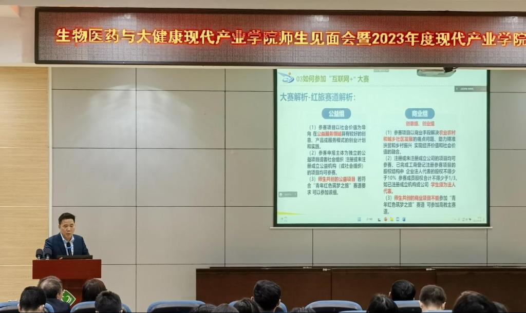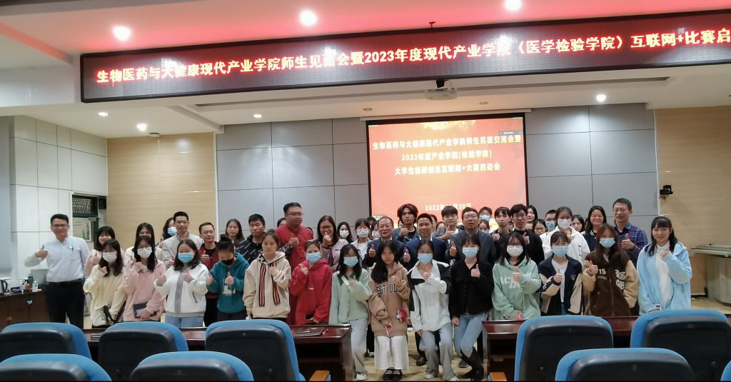 为了进一步激发我校现代产业学院学生的创新创业意识,积极参与“互联网+”大学生创新创业大赛,2022年11月30日下午,英国上市官网365生物医药与大健康现代产业学院召开了师生见面交流会暨2023年度现代产业学院(医学检验学院)“互联网+”专项比赛启动会。