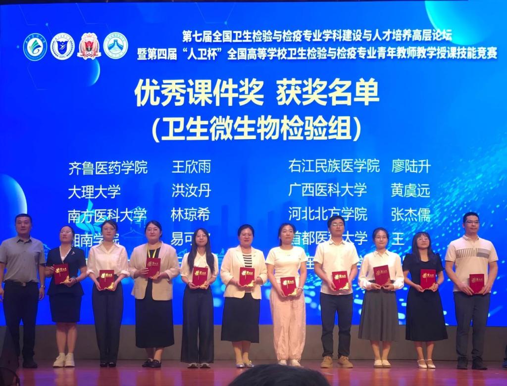本次竞赛考量了参赛教师的综合教学能力,除了现场授课外,课程思政、信息化教学、教案设计、课件制作等都占有不同权重。赛事为卫生检验与检疫专业青年教师搭建了一个充分展示自我、提升自我、完善自我、发展自我的平台,起到了强师赋能、以赛促教的积极作用。经过激烈的角逐,廖陆升老师荣获卫生微生物检验组教学授课技能竞赛二等奖、优秀教案奖、优秀课件奖,黄桂梅老师获卫生理化检验组教学授课技能竞赛二等奖。