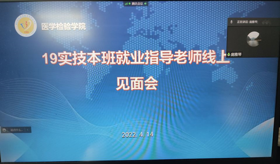 4月14日下午15:30份,医学检验学院19实技本班就业指导老师线上见面会如期举行。学院副院长庞雅琴博士、19实技本班班主任、医学实验技术教研室、医学生物技术教研室全体老师参加了会议。