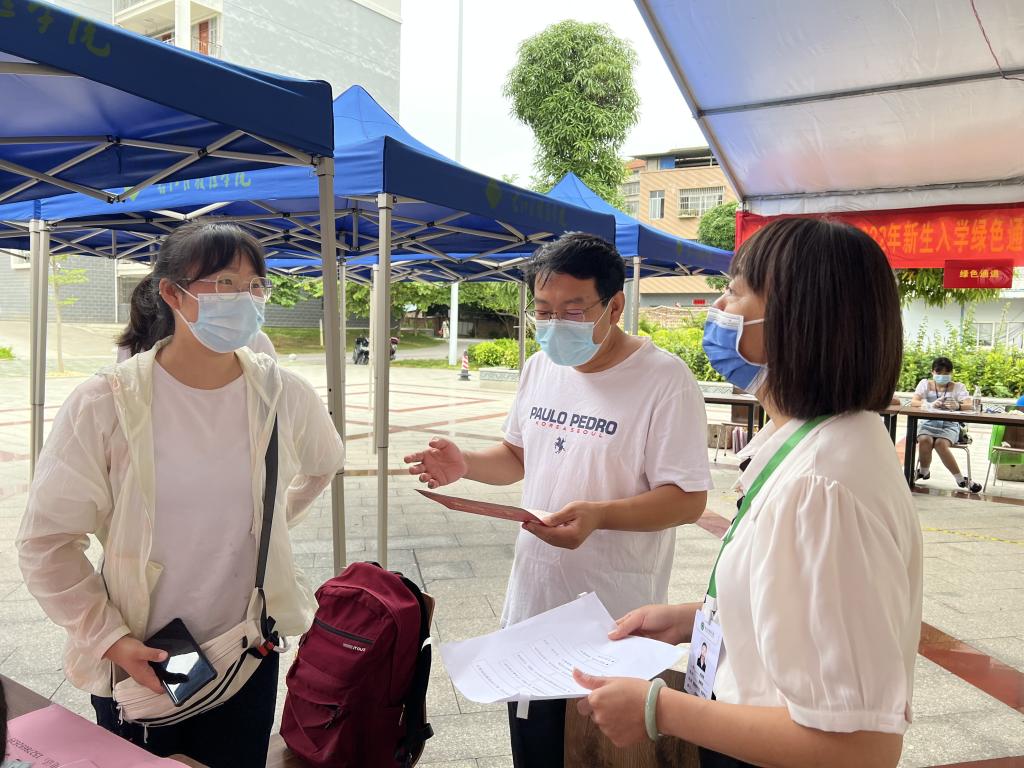 迎新工作如火如荼,到处都是忙碌身影。在知新广场的迎新接待点,新同学陆陆续续来到,志愿者们帮助他们把行李搬到宿舍,有条不紊的引领新生完成报道的所有程序,给新生们介绍着右医的景色,一路谈笑风生。各专业老师和志愿者们积极配合,做好接待工作,安排迎新细节,维持整个迎新现场的秩序。所有人对每一个细节都精益求精,在效率和质量两不误的情况下顺利完成任务。即使顶着高温炎热的天气,也毫不退缩。期间,学校党委邓砚书记、赵丽娟副书记亲临现场检查指导医学检验学院的迎新工作。
