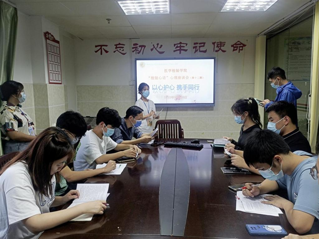 2022年10月28日下午,医学检验学院在7栋11楼会议室开展“以心护心,携手同行”为主题的“检验心语”心理座谈会。本次座谈会主要是对心理委员进行业务培训以及帮助他们解决工作中遇到的困惑。莅临本次会议的老师是医学检验学院学生科科长王超老师。