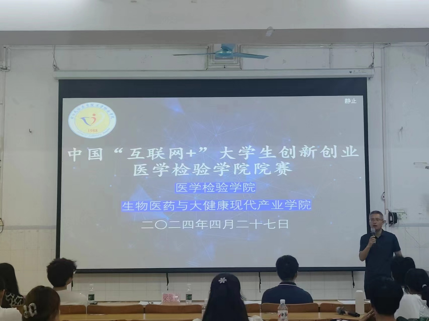 4月27号上午8:00-12:00和下午3:00-5:30,医学检验学院和生物医药与大健康现代产业学院联合在校本部5-201教室举行了2024年中国国际大学生创新大赛的院级比赛。本次比赛通过线下路演的形式进行。