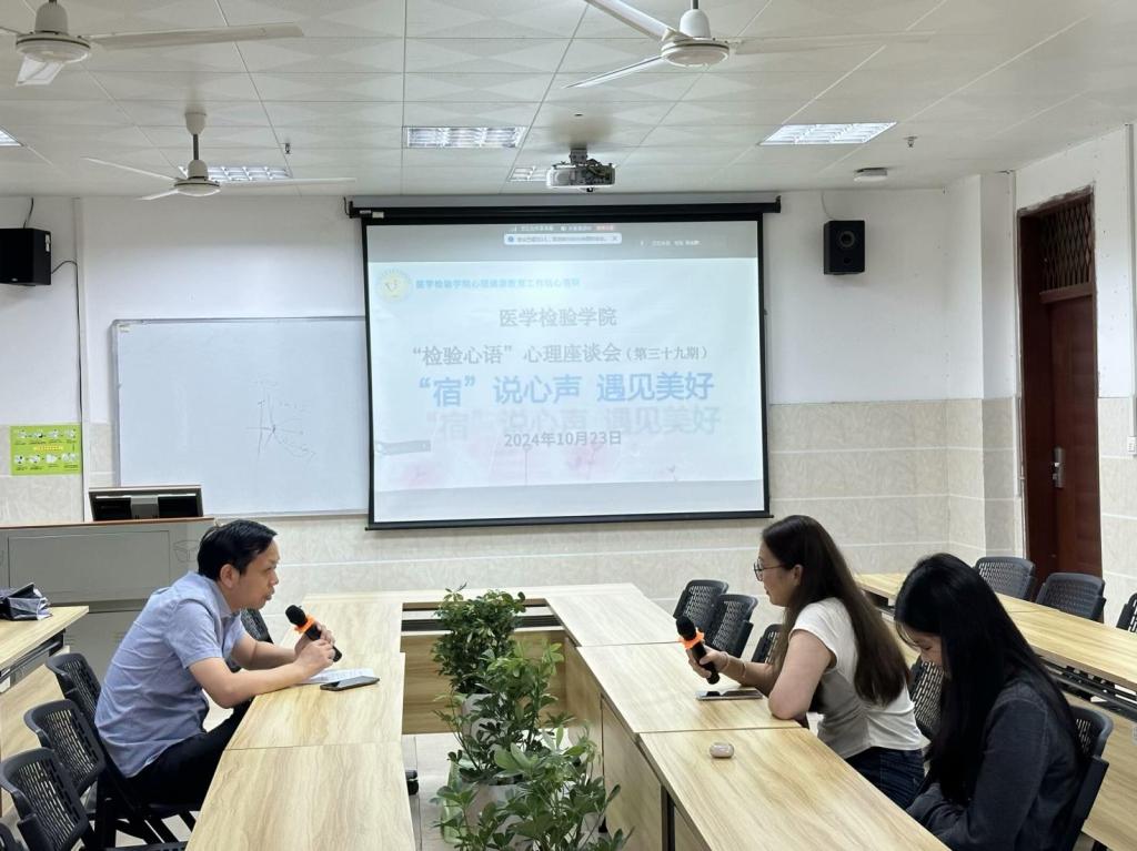 10月23日下午17:30,医学检验学院于7号教学楼609教室开展了第三十九期以“‘宿’说心声,遇见美好”为主题的“检验心语”座谈会。本次会议采取线上线下结合的方式进行,医学检验学院学生科王超老师参加本次座谈会。