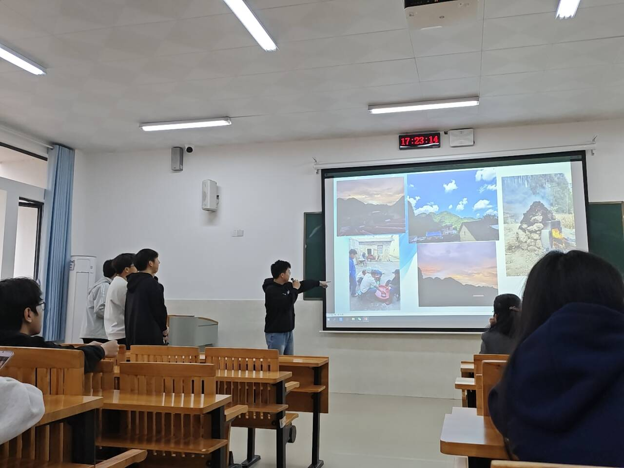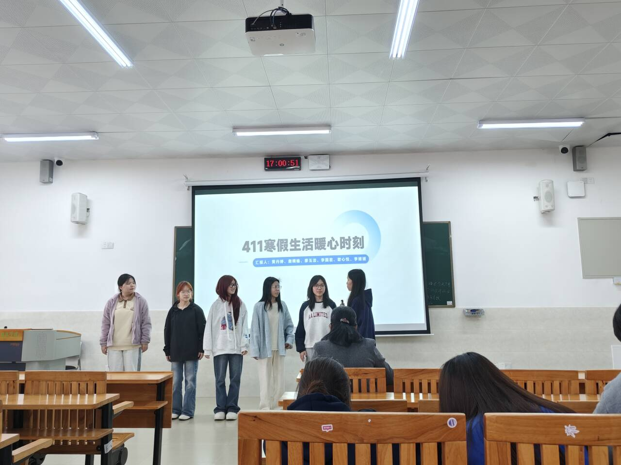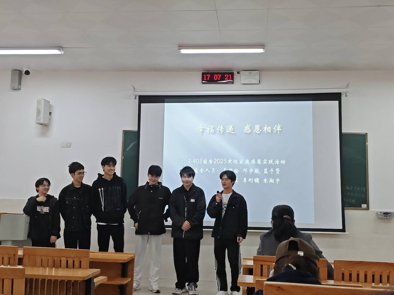 分享会以寝室为单位展开,同学们借助图片,生动讲述寒假生活点滴。有的同学回忆起与家人共度春节的温馨时刻:除夕阖家围坐,共享年夜饭,其乐融融;一同贴春联、放烟花,喜迎新年。展示的全家福中,家人笑容灿烂。同学们感慨,这个春节让他们更加珍视亲情,深切体会到家的温暖。